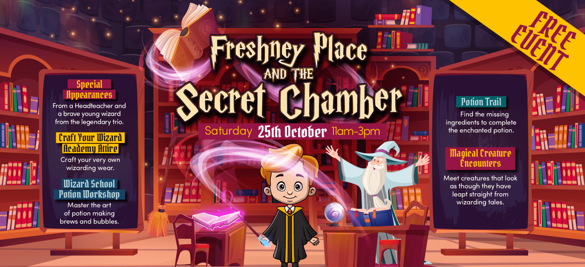 Join Us for a Magical Day at Freshney Place! Date: Saturday 25th OctoberTime: 11am – 3pmLocation: Freshney Place Shopping Centre Meet a brave young Wizard and a very special Head Teacher from a world of magic… then get ready to: Craft your own wizarding attireJoin a hands-on potion workshopFollow the magical trail to find missing... Read more »
